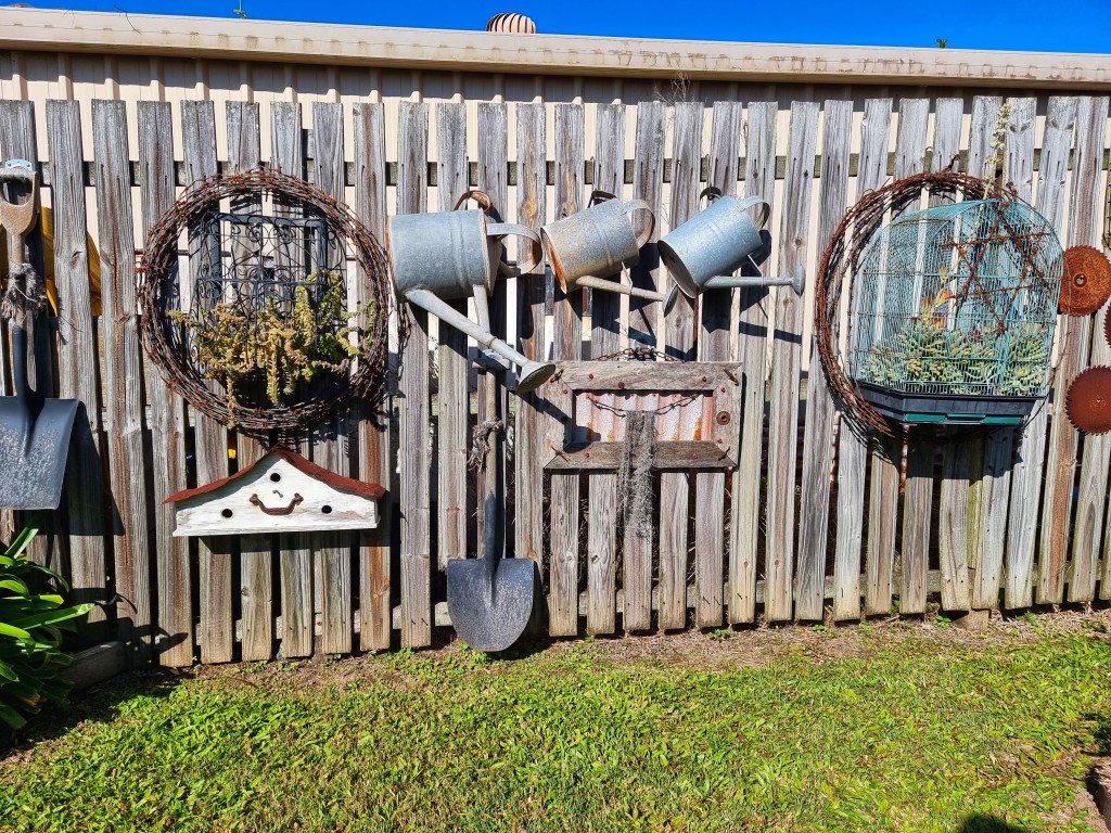 Follow the path to an exciting garden crammed with many forms of recycled and quirky garden art made by the garden owner.