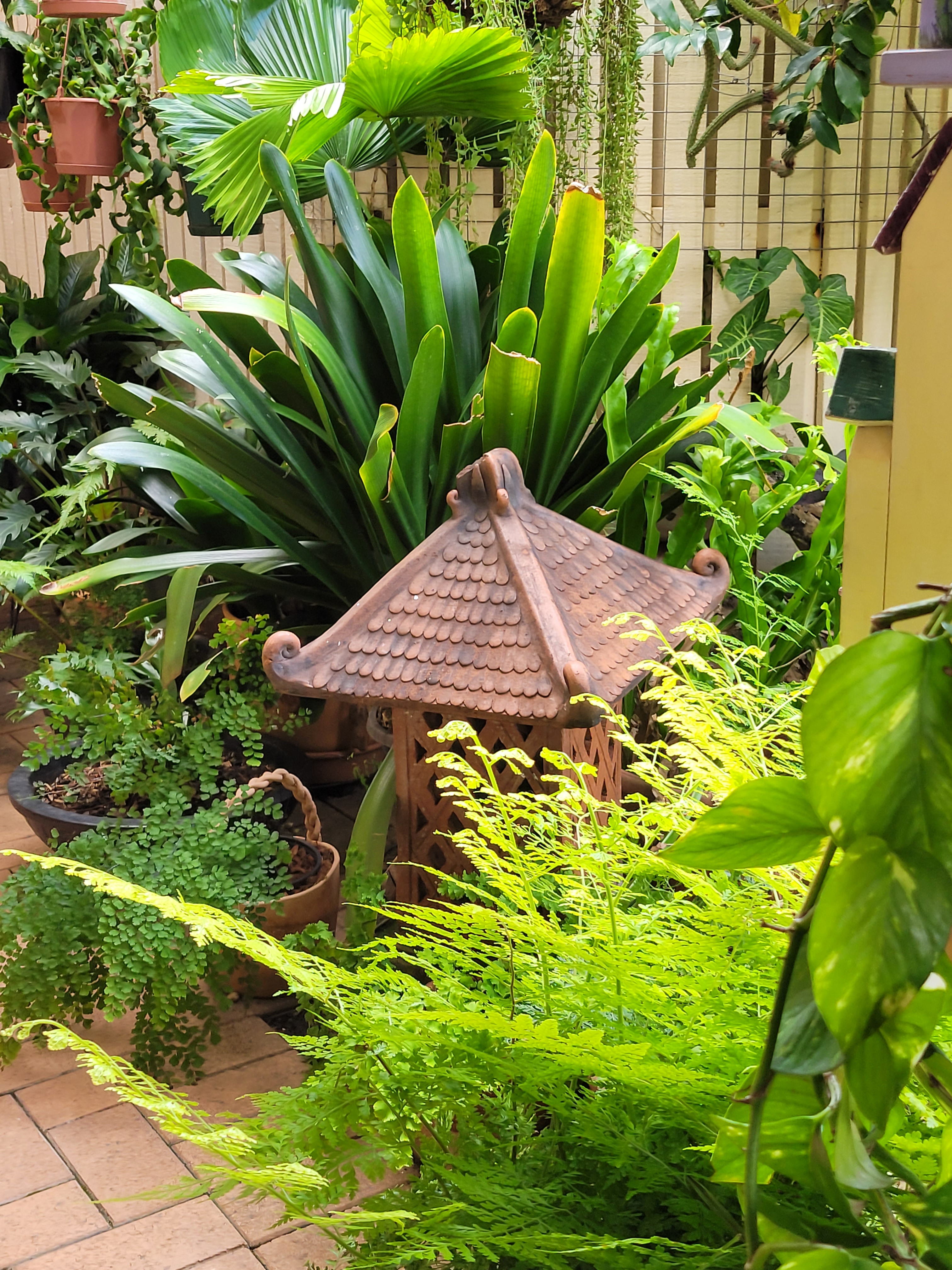 The garden has been split into small garden rooms featuring bonsais, desert roses, cacti, succulents, ferns and roses.
