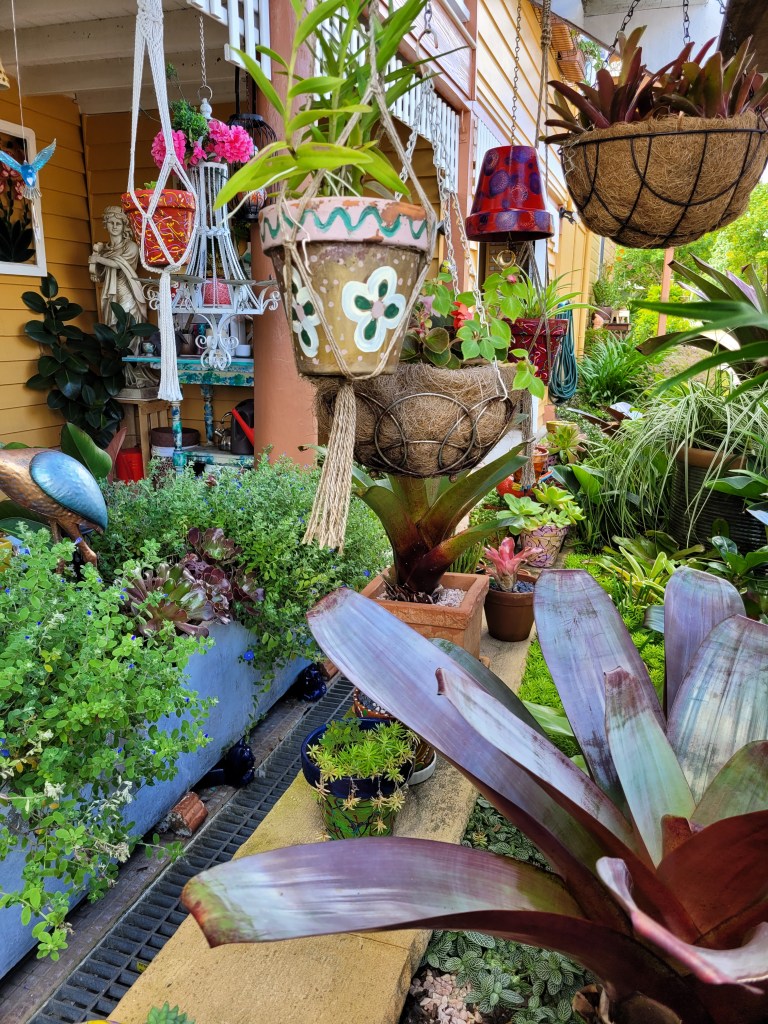 Living Garden Easels throughout the garden give splashes of colour and provide imagination, along with arrays of hanging floral baskets. A multitude of hand-painted pretty pots adorn the garden in several areas showing off succulent displays.