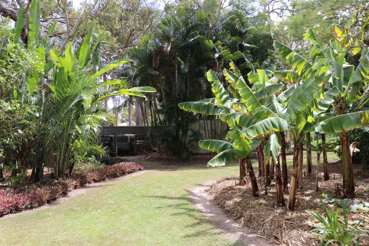 Make sure you look up in the this garden as there are a number of birds nesting in the trees. This productive garden has a variety of fruits and vegetables on offer throughout the year.