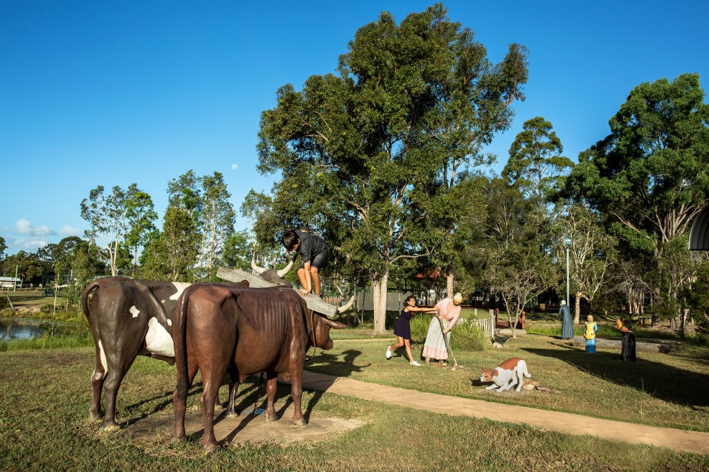 The highlight at this park is the Wook-koo Story Walk, which features lifelike sculptures of animals, all created by local artists, along a 135m coloured path which represents the Mary River.