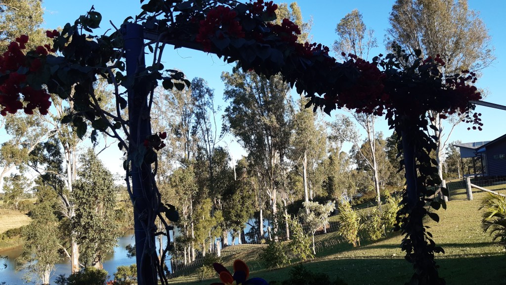 This relatively new country garden offers the wide expanse of 3 acres with a combination of lawns and rambling gardens against the backdrop of the Mary River.
